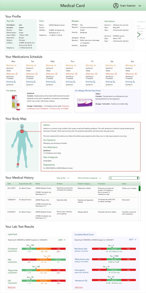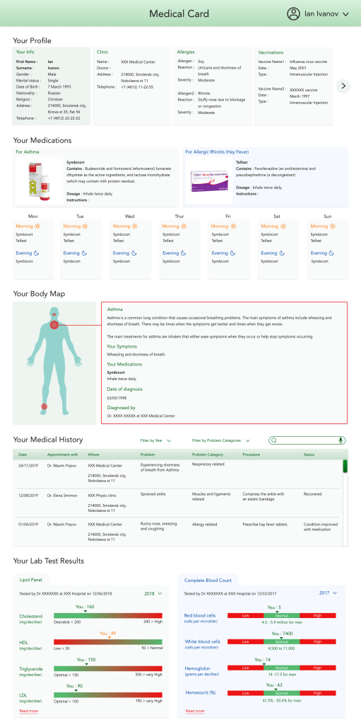 I entered a design competition to design an electronic medical card for Globosphere Russia in 2020.