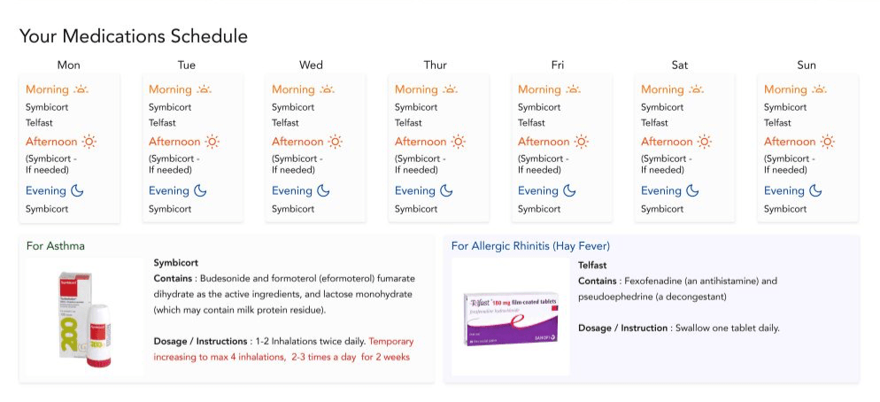 - Swapped the order of the medication schedule and the medication info, and changed the title to ‘Your medication schedule’.