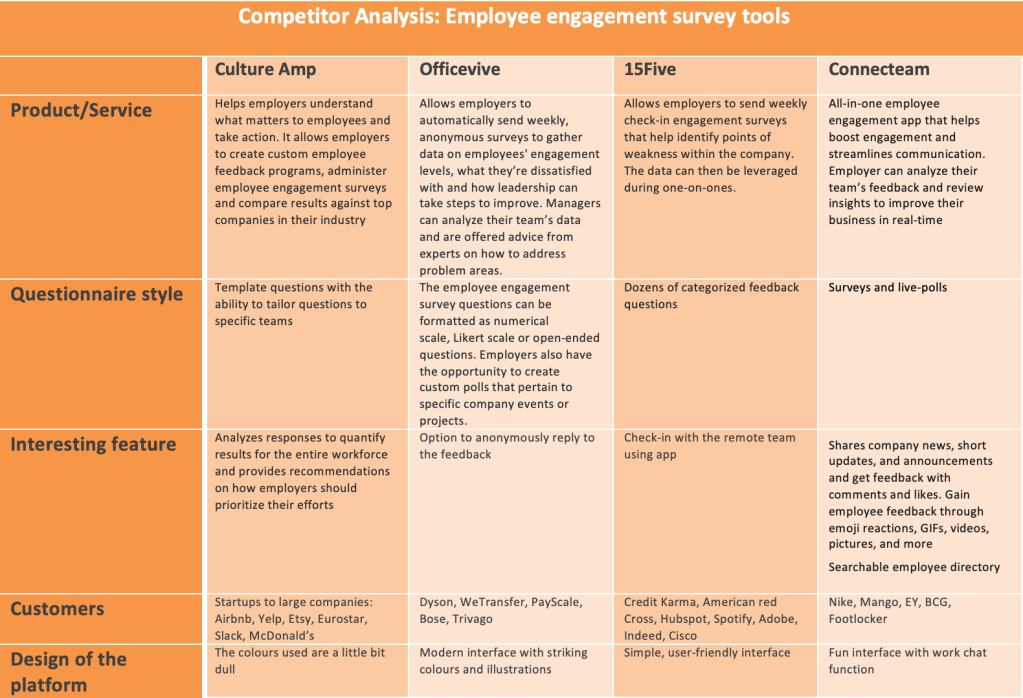 Develop a survey tool with the goal of measuring employee needs in the workplace. Design a tool that employees continue to engage even as time passes.