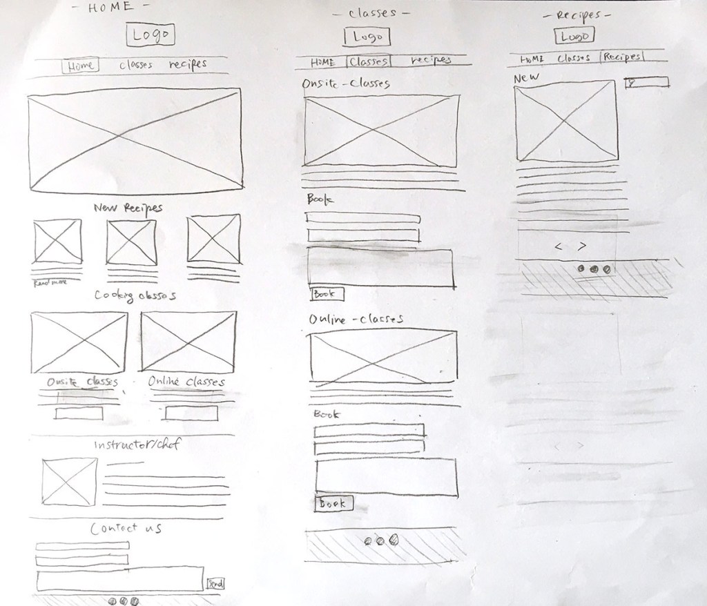 After speaking to the client further, I refined her business needs. She wanted to put more emphasis on her cooking classes, as that’s where she would make money. I changed the layout of the website by placing cooking classes information directly under the main banner image.